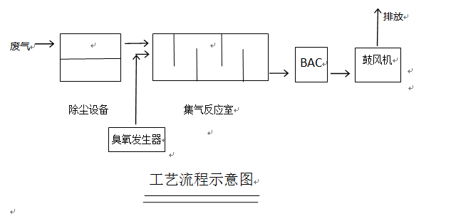 當(dāng)臭氧完全和廢氣發(fā)生反應(yīng),產(chǎn)生無(wú)二次污染物質(zhì),理想狀態(tài)是無(wú)臭氧殘留,但是由于臭氧添加量把握精確度不高,所以往往會(huì)在理論值的基礎(chǔ)上增大添加量,有可能在廢氣完全被處理后,還有臭氧殘留。所以在處理后的氣體出口在接入活性炭BAC,不僅能夠吸附殘留的臭氧,還可以進(jìn)一步凈化廢氣,減小臭氧添加量。